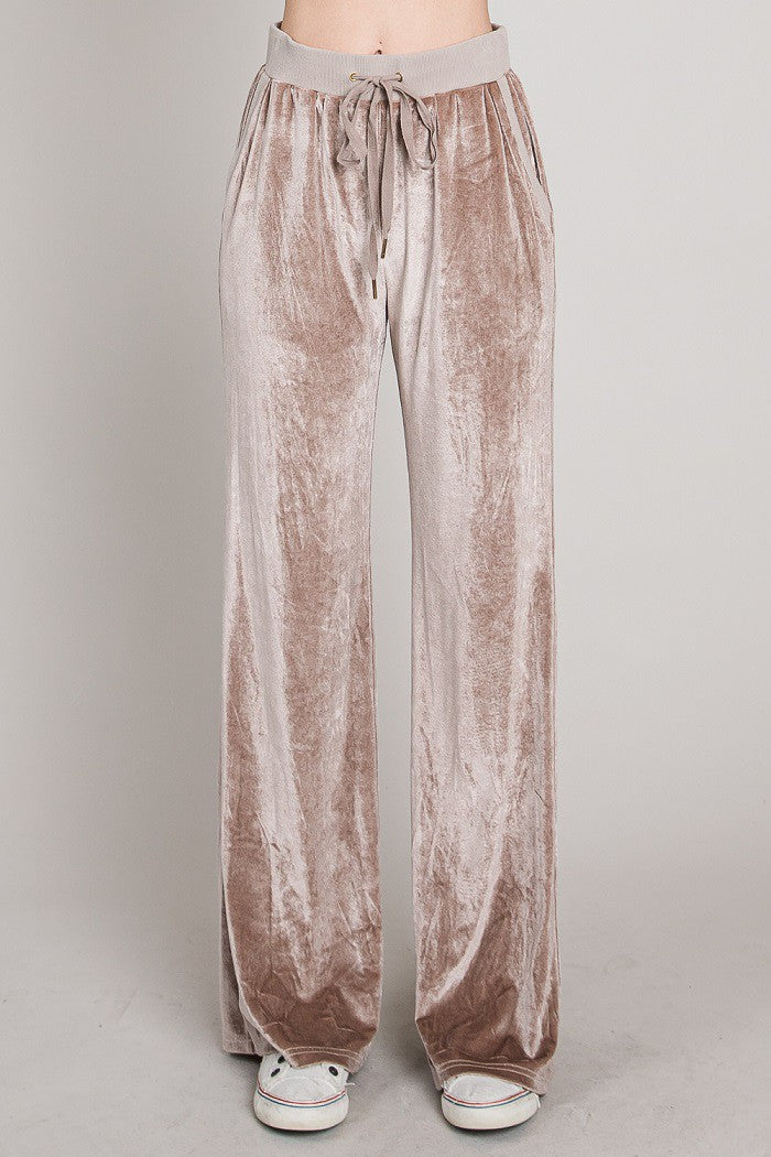 Slip into softness with our plush knit velour lounge pants featuring soft corduroy paneling and an adjustable drawstring waistband. Designed for cozy weekends or elevated casual wear, these pants offer a relaxed fit with just the right amount of structure. Available in two rich shades: warm Latte and deep Mulberry.