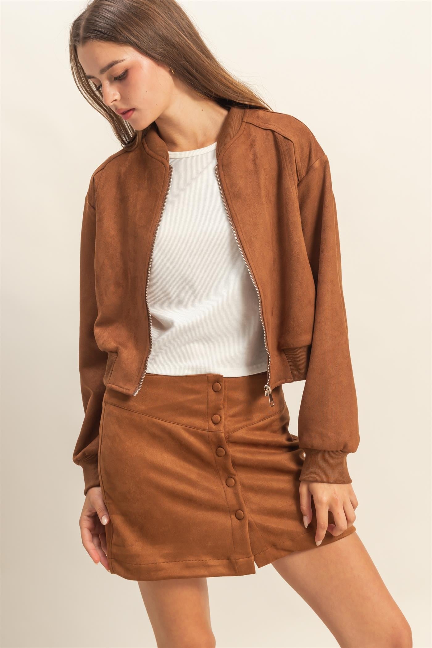 Full-zip front with bomber silhouette