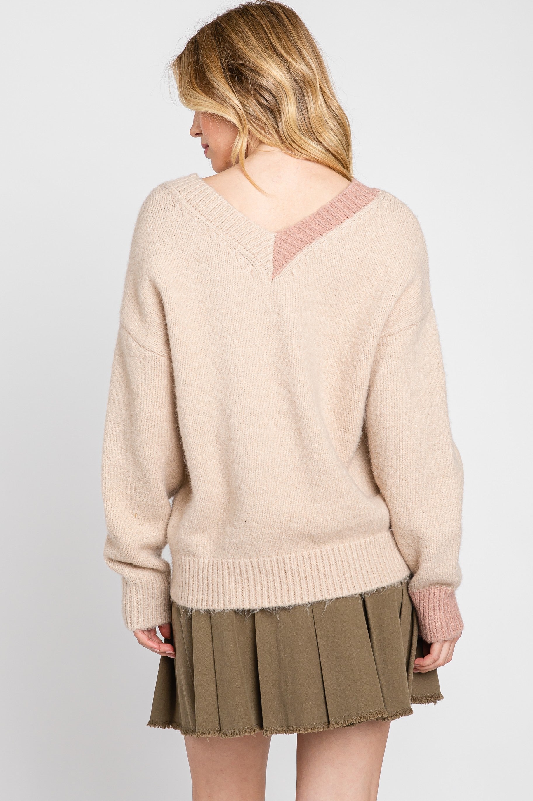 The Pinkcrest Sweater brings a soft contrast V neckline with a relaxed drop shoulder fit that feels effortless and easy to style. Cozy, lightweight, and perfect with its matching bottom.
