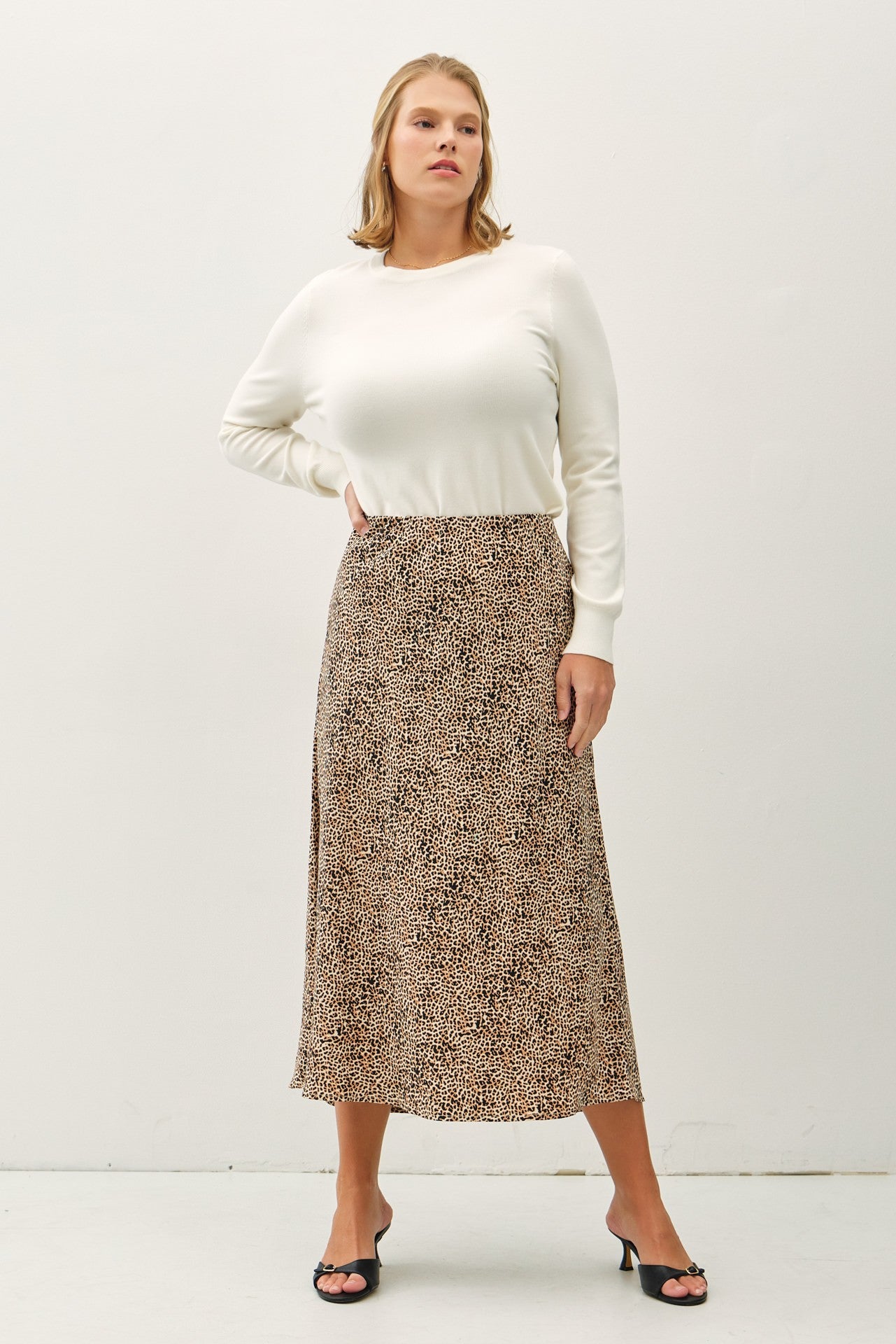 A plus-size floral print midi skirt with an easy elastic waistband for all-day comfort. Designed in a lightweight fabric with a retro-inspired silhouette, it falls just below the knee for a feminine finish. Pair with a simple tank or blouse for effortless style.